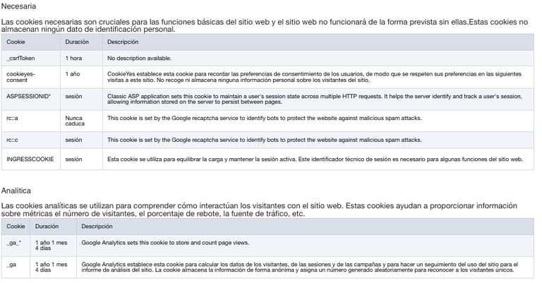 4. Consentimiento para el uso de cookies